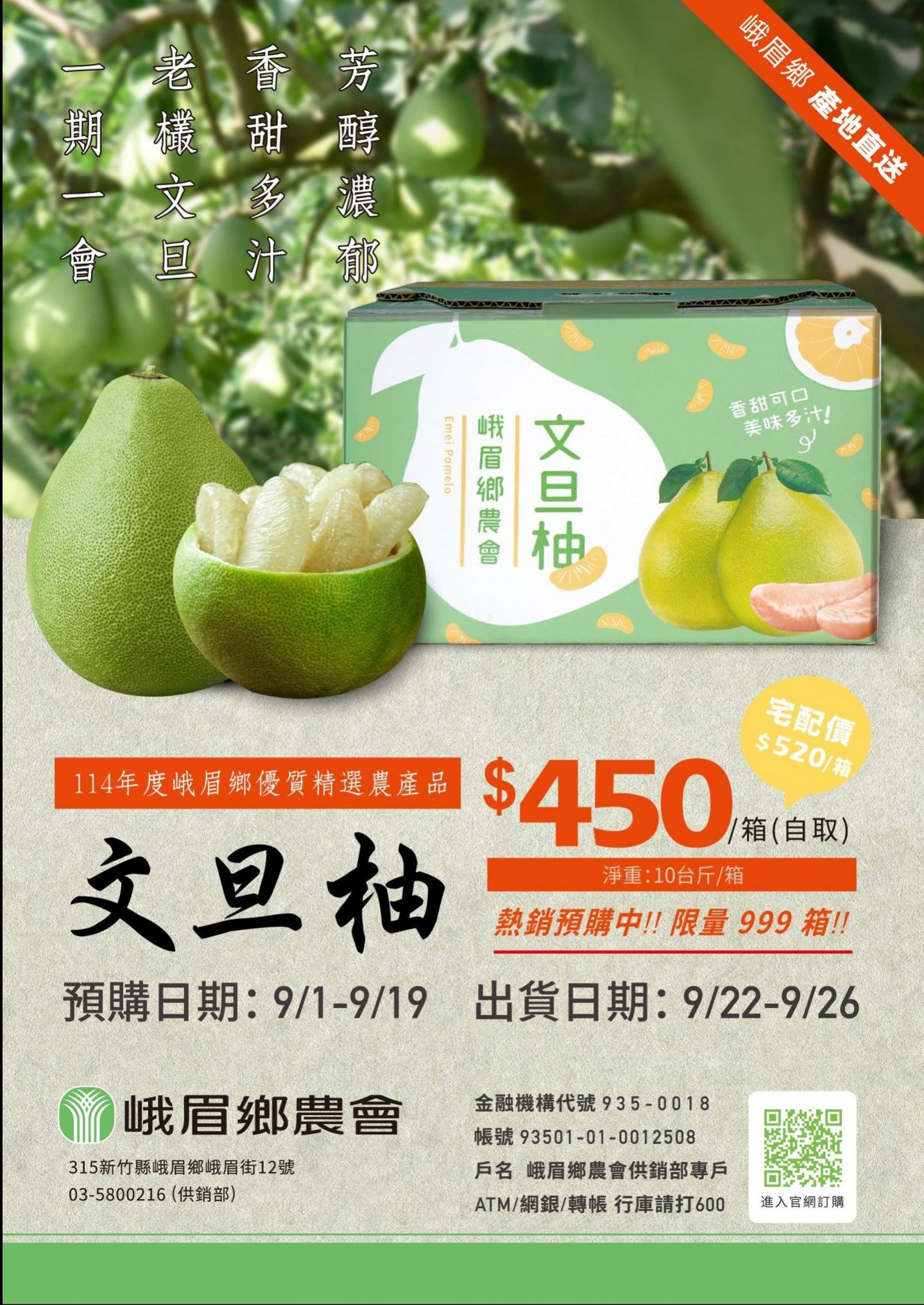 峨眉文旦柚 114/09/01(週一)起開始預購!!!限量999箱!!!