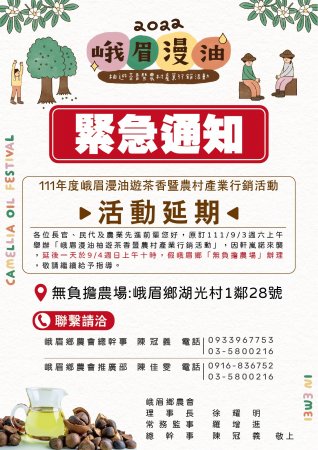 !緊急通知! 111年度峨眉漫油遊茶香暨農村產業行銷活動 !活動延期!