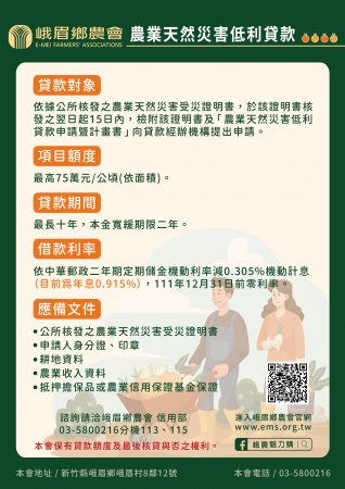 新竹縣相關鄉(鎮、市)為辦理桶柑等作物 111年 2月下旬及 3月下旬霪雨(遲發性)農業天然災害低利貸款,