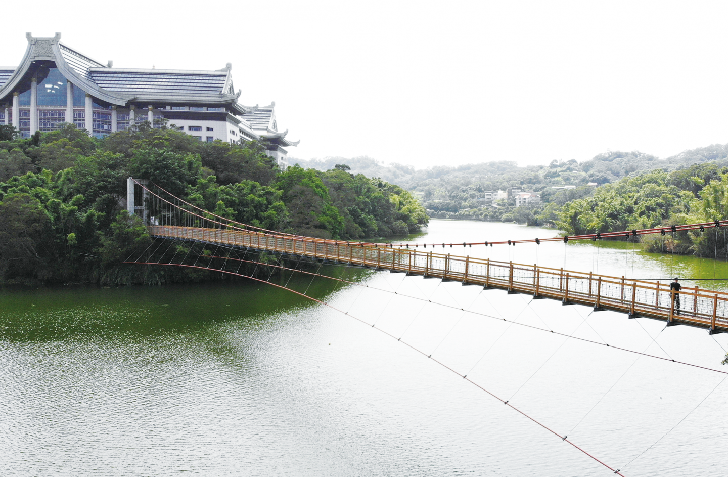 此橋寬兩米五十,長約一百公尺,橋上可一攬峨眉湖波光粼粼外,更可遠眺獅頭山、五指山、鵝公髻山,風景極佳。