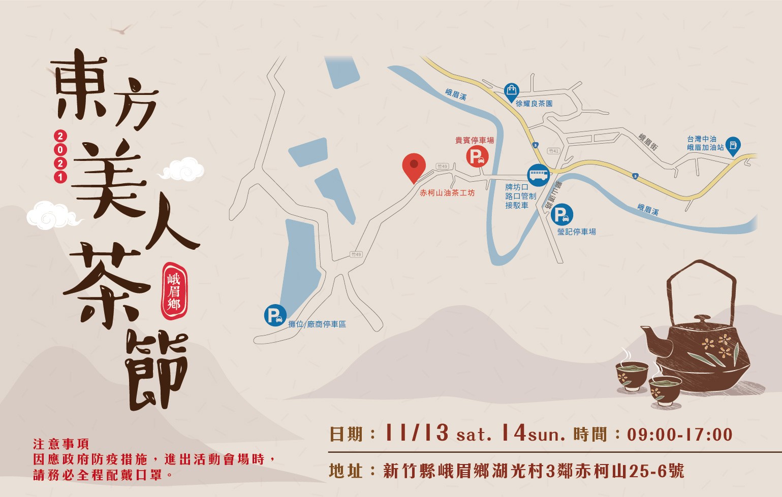 以述說新竹縣東方美人茶產業創造經濟奇蹟為故事的公共電視影劇《茶金》(英語:Gold Leaf),將在2021/11/13本周六正式開播,而新竹縣峨眉鄉是東方美人茶知名產地之一,峨眉鄉公所及峨眉鄉農會也將於今年11/13~11/14兩日在「峨眉鄉赤柯山油茶工坊」(峨眉鄉湖光村赤柯山25-6號)舉辦「2021年峨眉鄉東方美人茶節產業活動暨農特產品展銷會」,兩天除了各式農特產品展售外,更精心準備「柚園樹下茶席體驗」、「苦茶油茶餐饗宴」、「打造東方美人茶吧」提供特調飲品等活動,將東方美人茶元素融入生活中,要讓更多民眾不僅喝得到、也能感受到峨眉鄉最道地的東方美人茶。