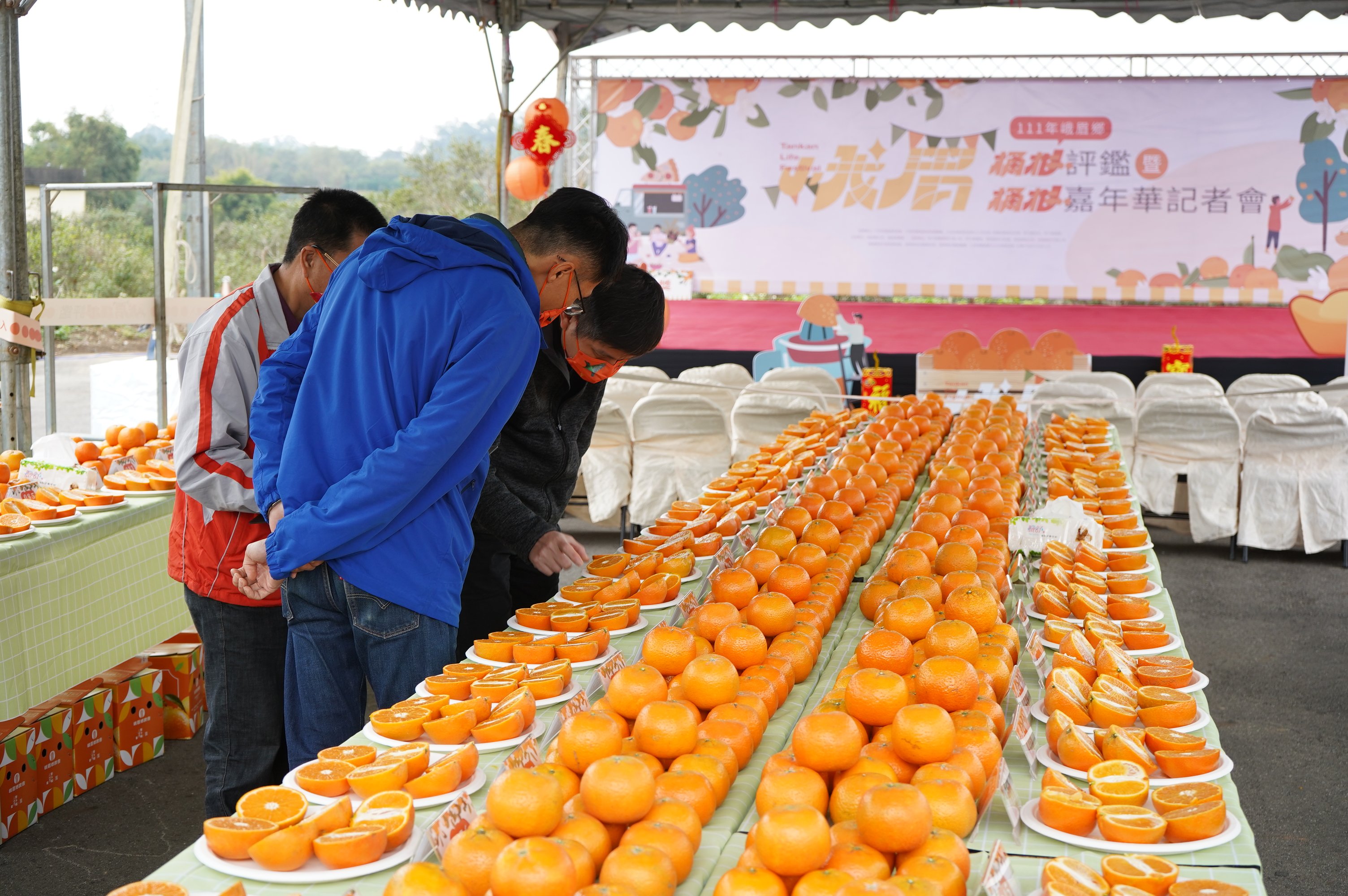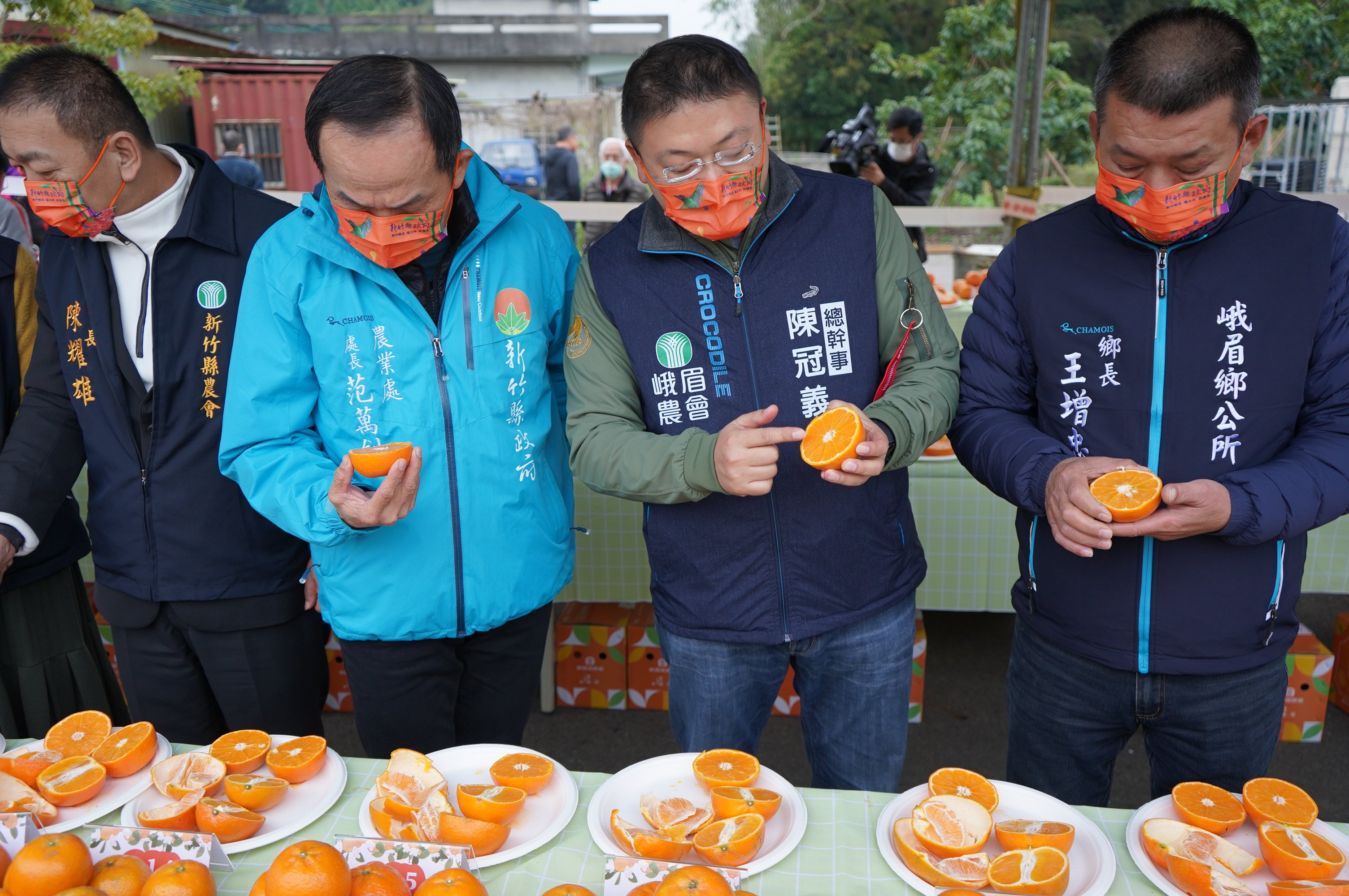 為推廣峨眉鄉桶柑農特產品,由峨眉鄉公所及峨眉鄉農會主辦的【2022桶柑嘉年華~桶柑評鑑暨活動記者會】,於1/13日峨眉鄉李家農園廣場(新竹縣峨眉鄉石井村11鄰16號,台三線87.5K 峨眉茶行斜對面)舉辦,本屆評鑑有100點(每點20台斤)共計2000台斤的優質桶柑果品競賽,邀請農業改良場專業評審針對果形外觀、糖度、水分含量等,逐一進行評分。新竹縣政府農業處長范萬釗、新竹縣政府農糧科科長黃怡娟、新竹縣政府輔導科廖瀅瀅、新竹縣農會理事長陳耀雄、總幹事李筱華、常務監事張春淇、峨眉鄉鄉長王增忠、代表會主席温修汝、峨眉鄉農會理事長徐耀明、常務監事羅增進、總幹事陳冠義以及鄉民代表鍾正隆、鄉民代表陳美玲、鄉民代表何秋香及各產銷班班員、峨眉鄉各村村長,共同前來參加評鑑記者會。